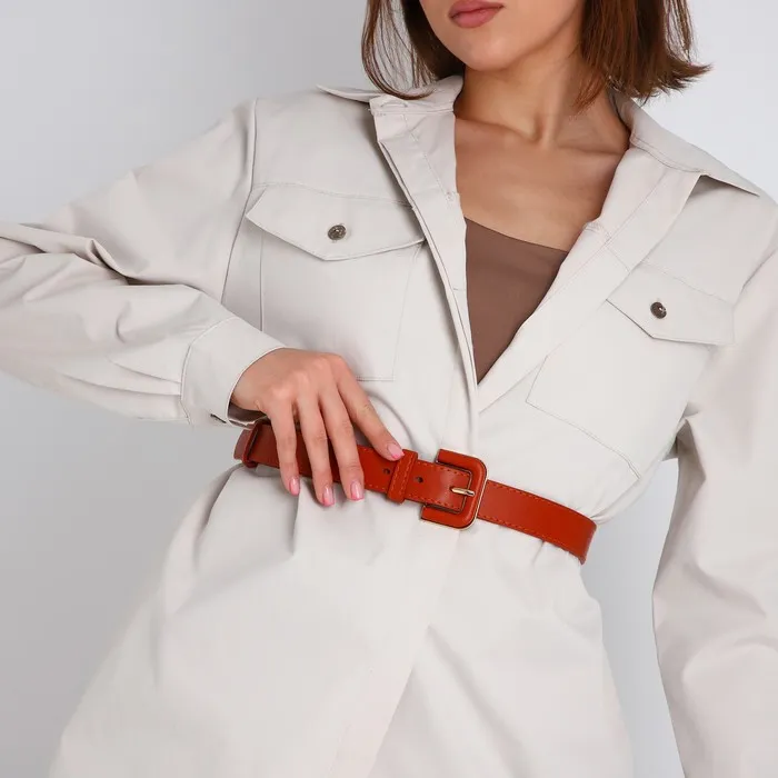 Ремень женский с винтом, 105×3 см, классическая пряжка со вставкой, рыжий — Характеристики
