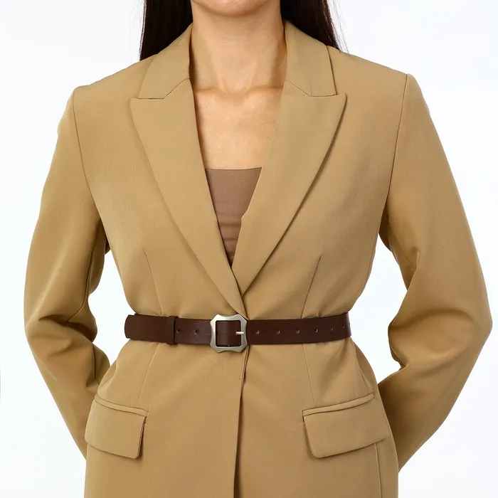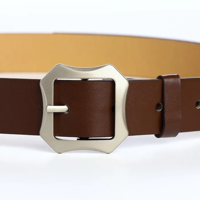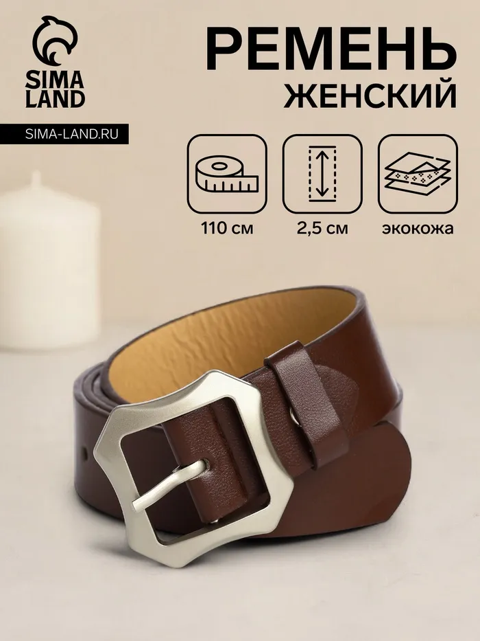 Ремень женский с винтом, 110×2.5 см, матовая классическая пряжка металл, коричневый — Характеристики