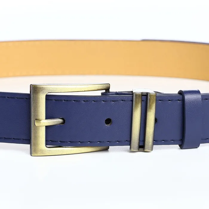 Ремень женский с винтом, 110×2.5 см, пряжка металл, золотистая, синий — Характеристики