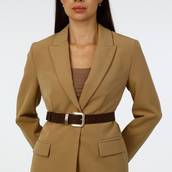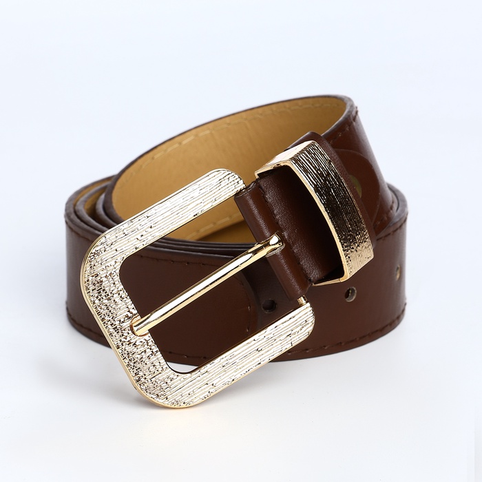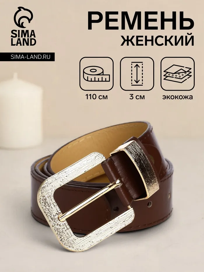 Ремень женский с винтом, 110×3 см, пряжка металл, золотистая, коричневый — Характеристики