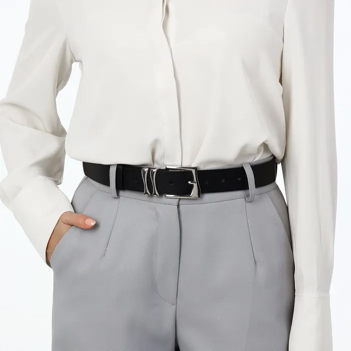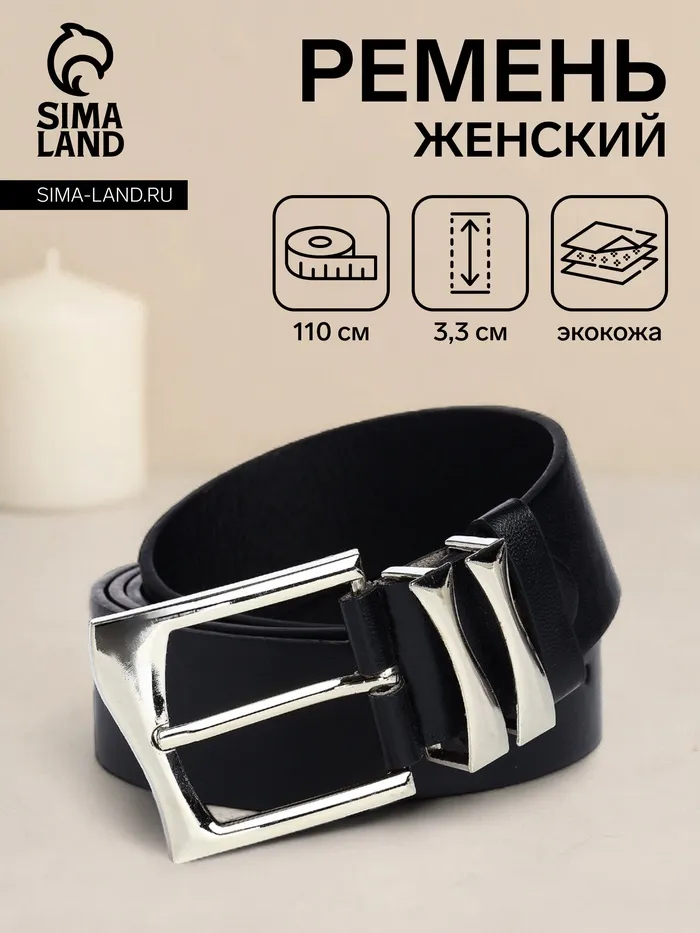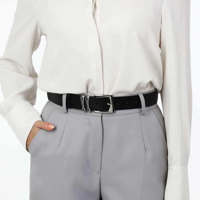 Ремень женский с винтом, 110×3.3 см, классическая пряжка металл, серебристая, чёрный — Характеристики