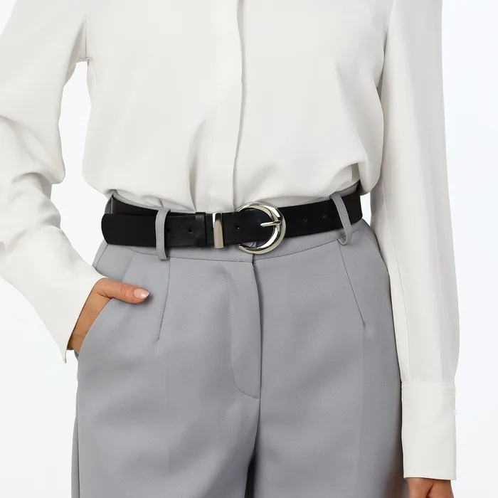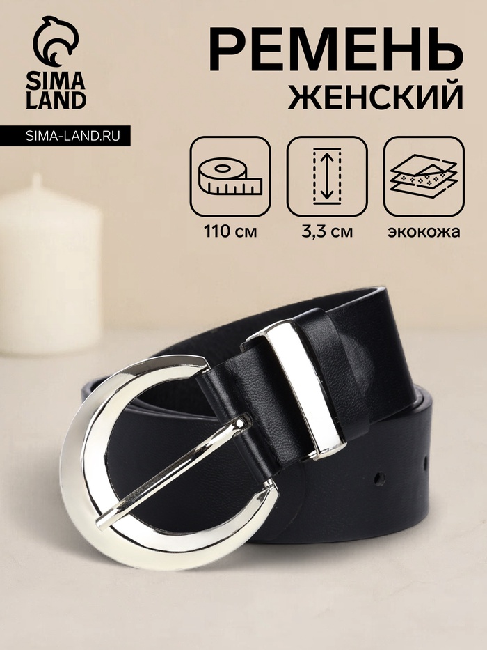 Ремень женский с винтом, 110×3.3 см, пряжка металл, серебристая, чёрный — Характеристики