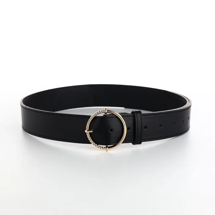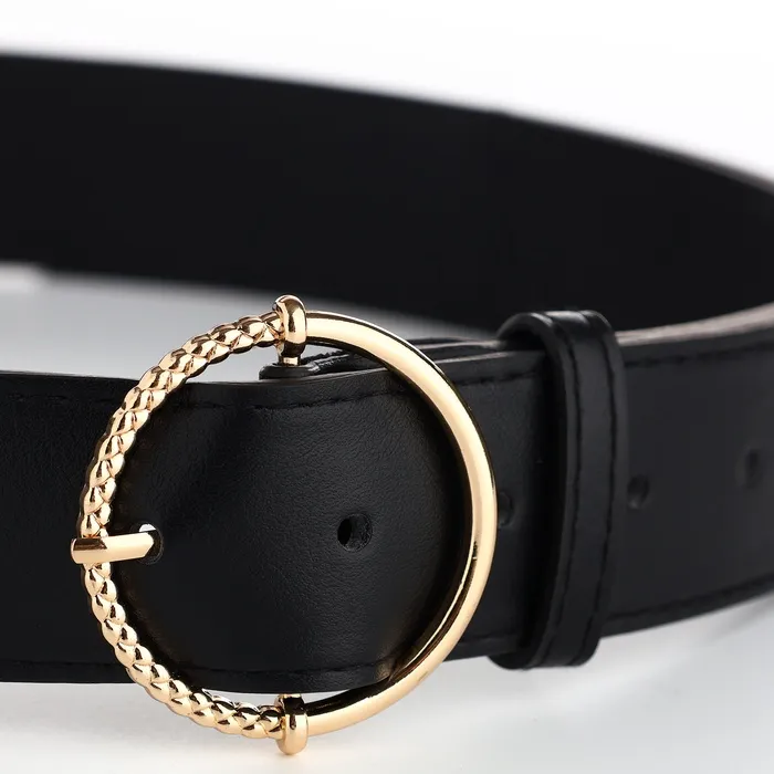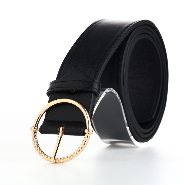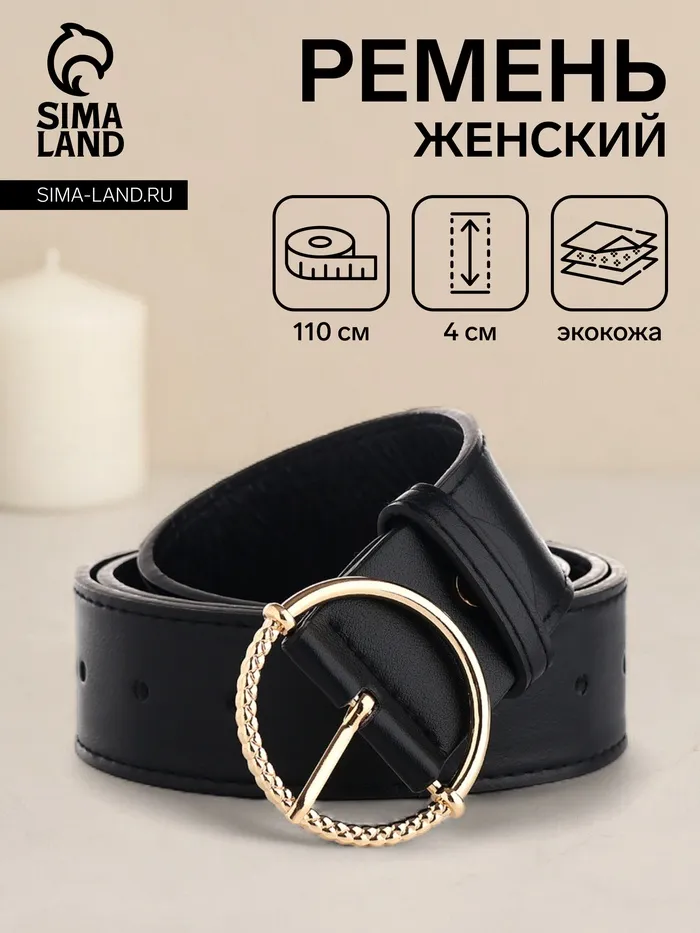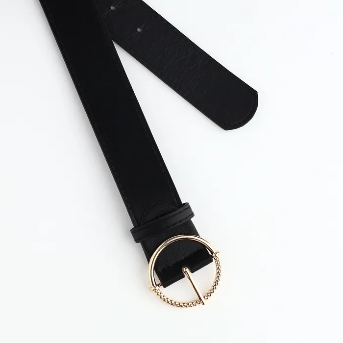 Ремень женский с винтом, 110×4 см, круглая пряжка металл, золотистая, чёрный — Характеристики
