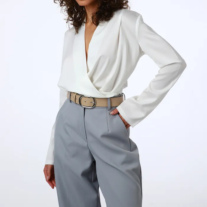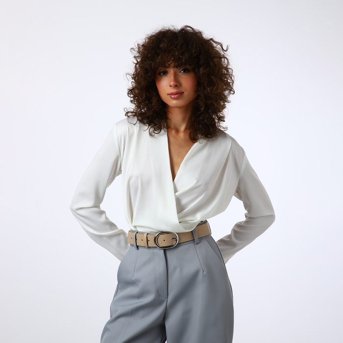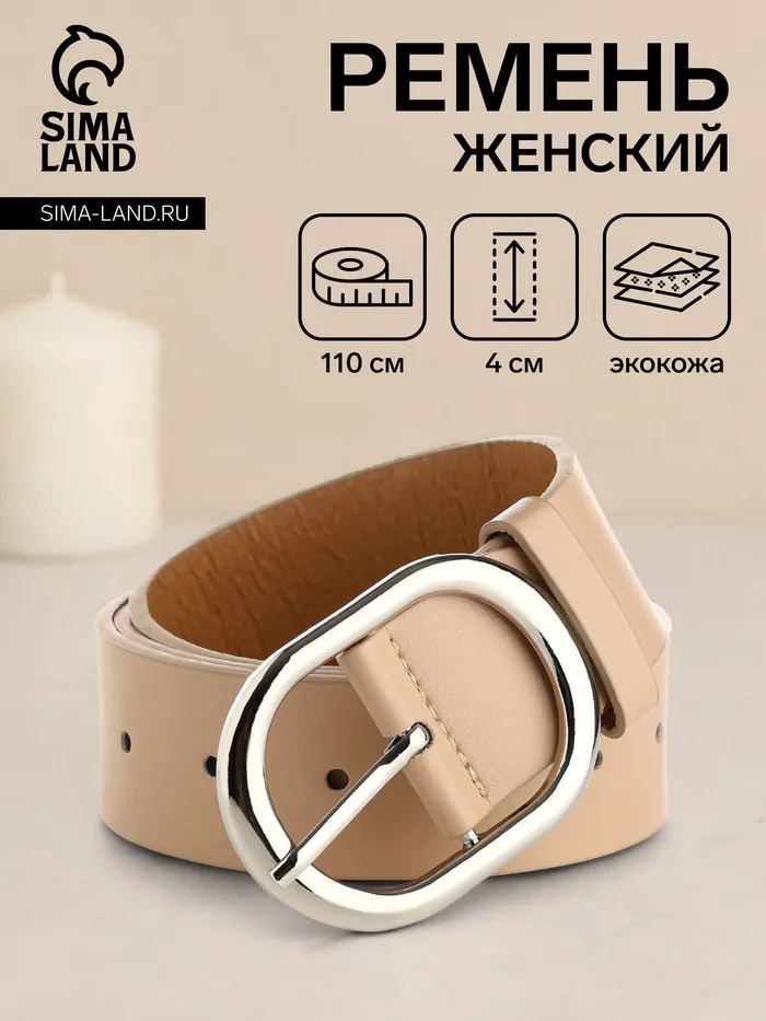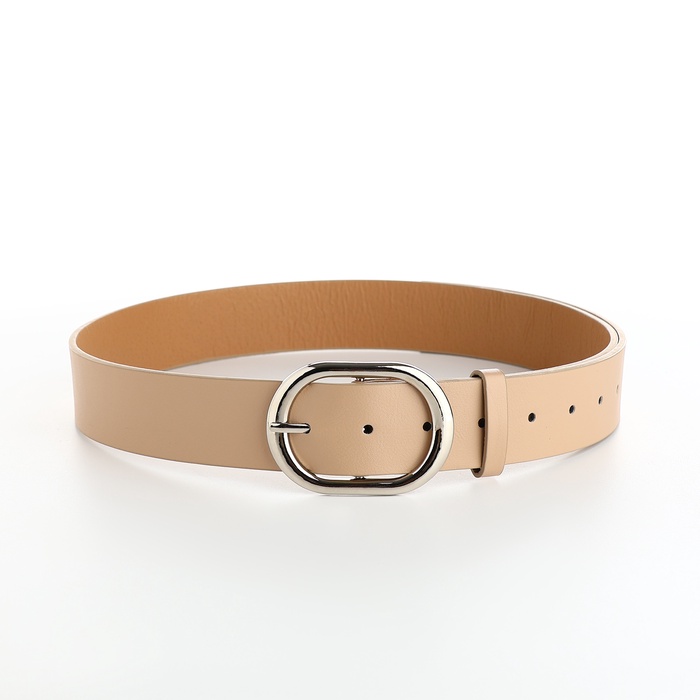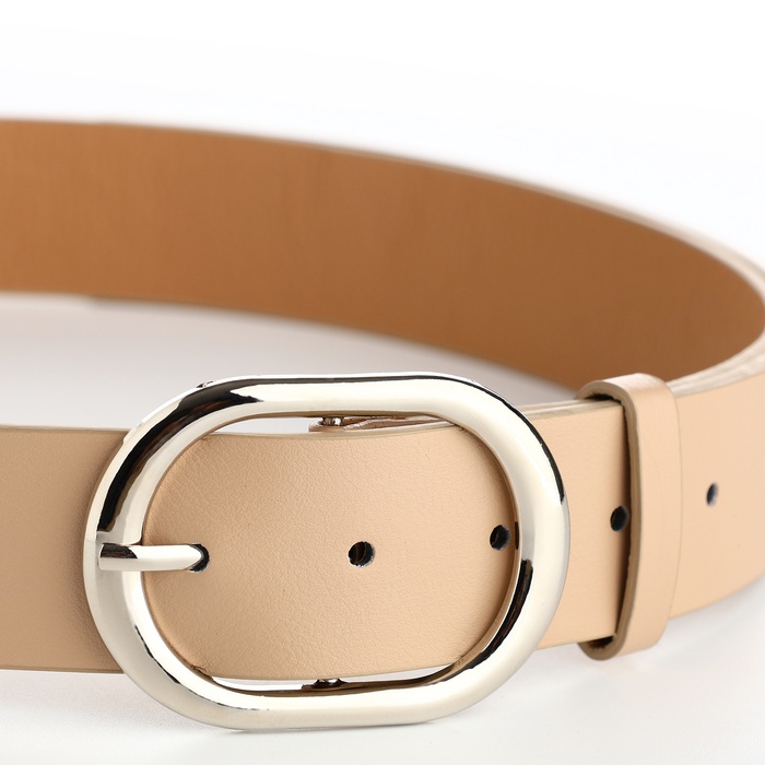 Ремень женский с винтом, 110×4 см, овальная пряжка металл, серебристая, бежевый — Характеристики