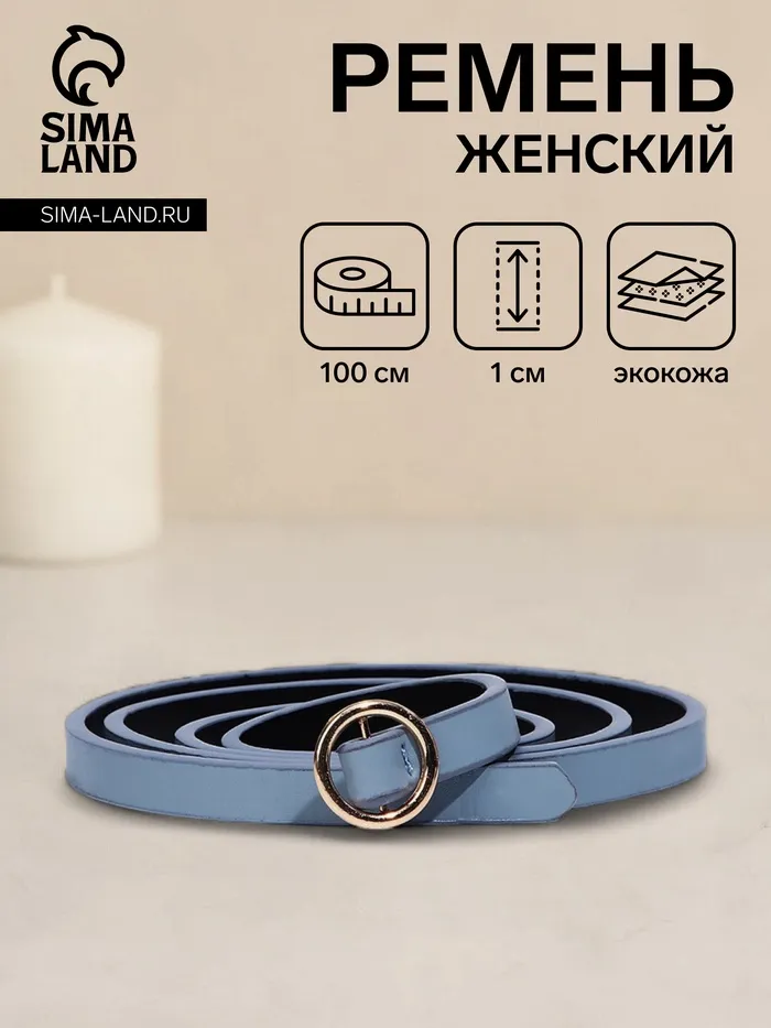 Ремень женский, ширина 1 см, пряжка металл, цвет голубой — Характеристики