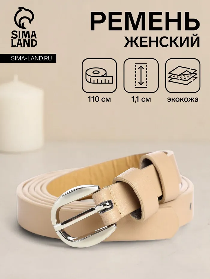 Ремень женский, ширина 1,1 см, пряжка металл, цвет бежевый — Характеристики