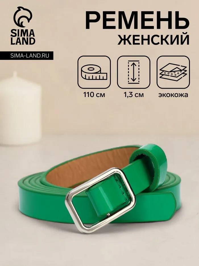 Ремень женский, ширина 1,3 см, пряжка металл, цвет зелёный — Характеристики