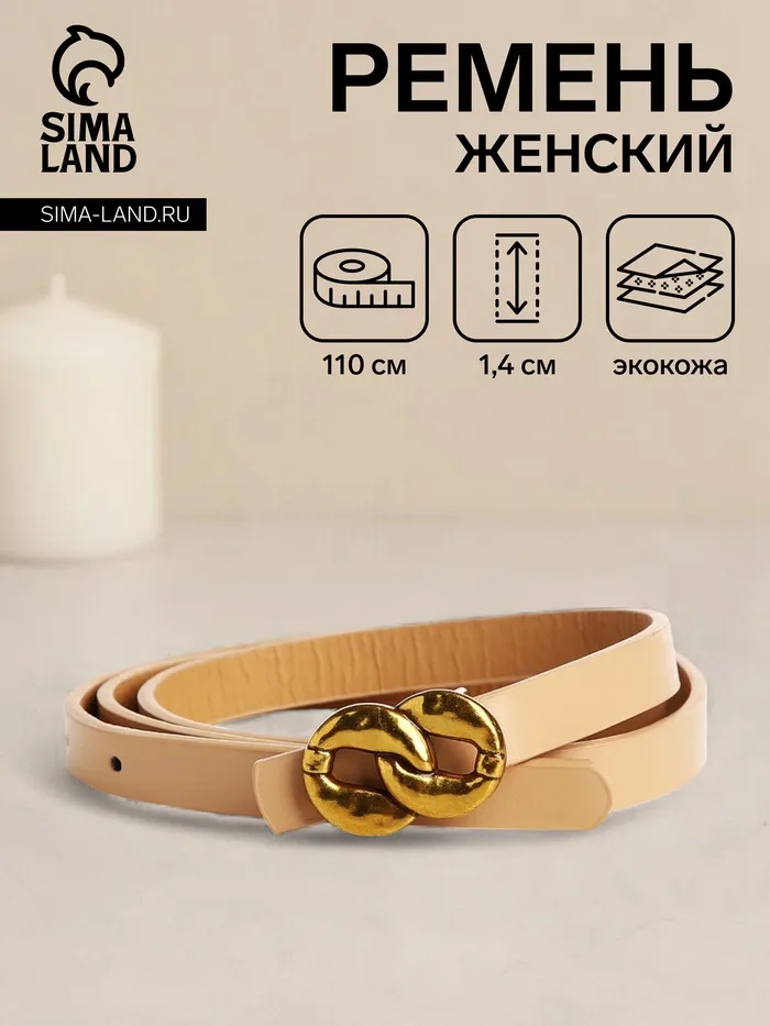 Ремень женский, ширина 1.4 см, пряжка металл, цвет бежевый — Характеристики