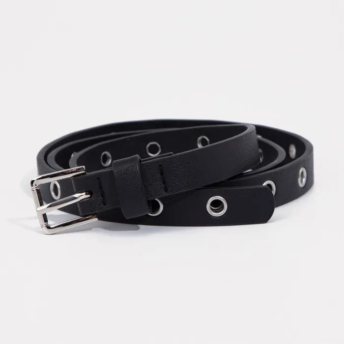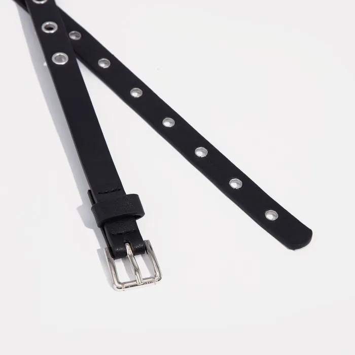 Ремень женский, ширина 1,5 см, пряжка металл, люверсы, цвет чёрный — Характеристики