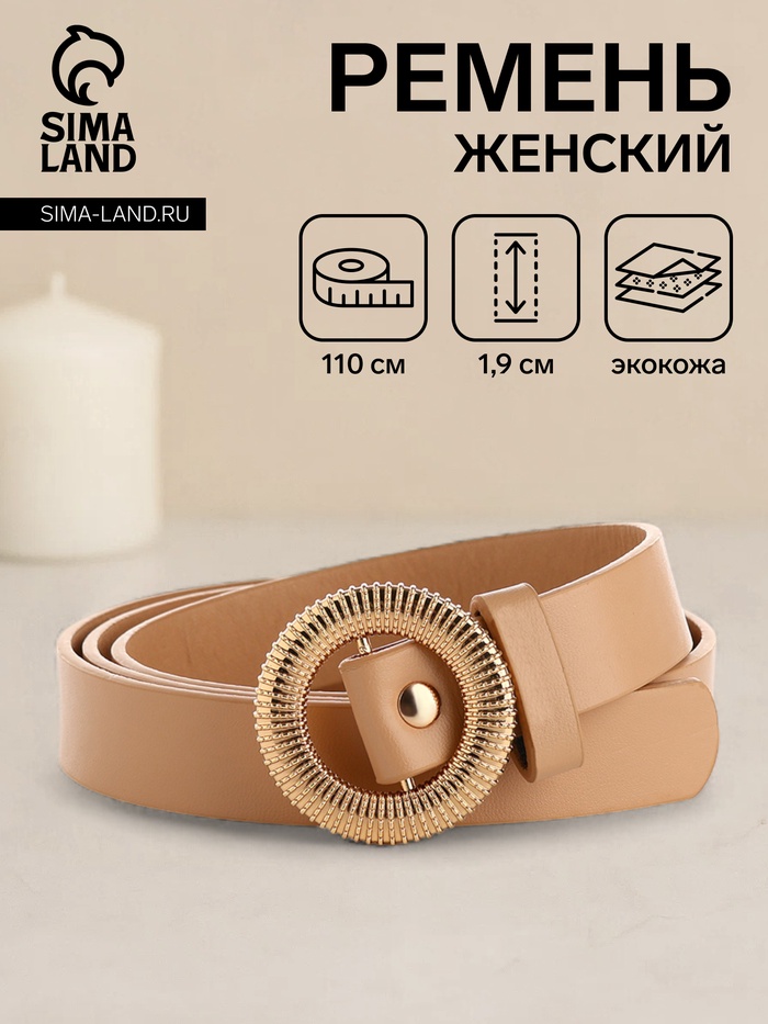 Ремень женский, ширина 1,9 см, пряжка металл, цвет бежевый — Характеристики