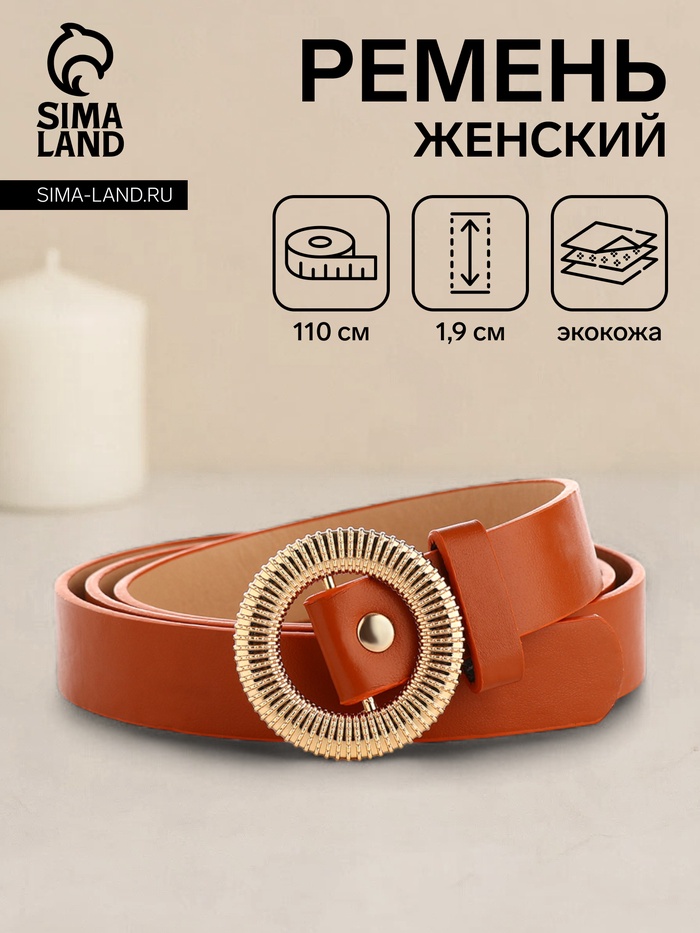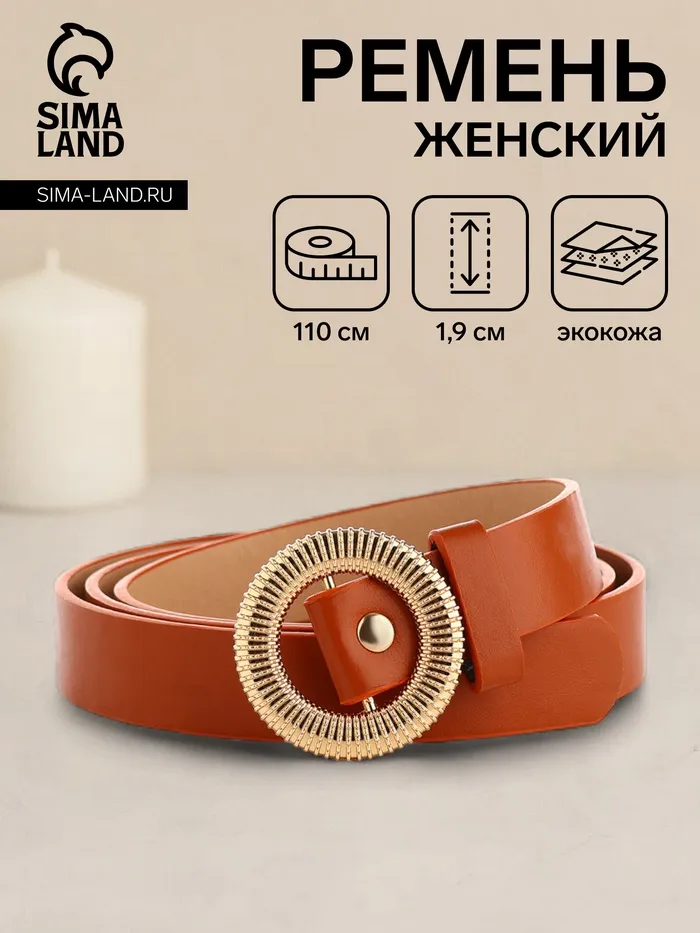 Ремень женский, ширина 1,9 см, пряжка металл, цвет рыжий — Характеристики