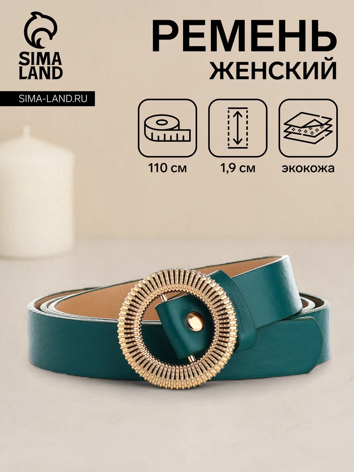 Ремень женский, ширина 1,9 см, пряжка металл, цвет зелёный — Характеристики