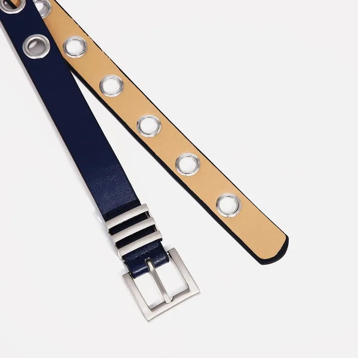 Ремень женский, ширина 2 см, пряжка металл, люверсы, цвет синий — Характеристики