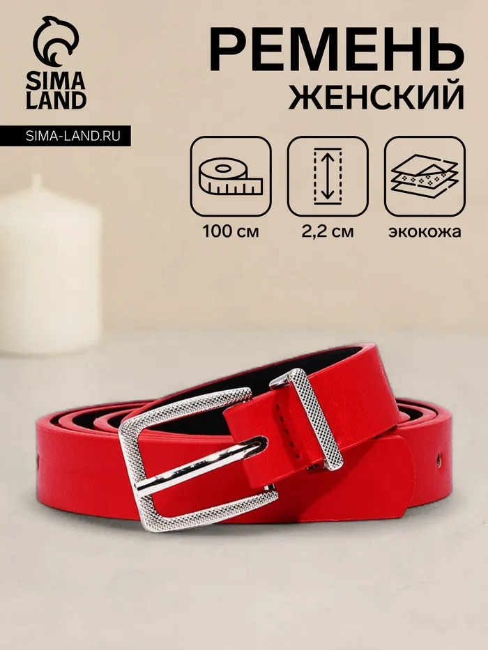 Ремень женский, ширина 2,2 см, пряжка металл, цвет красный — Характеристики