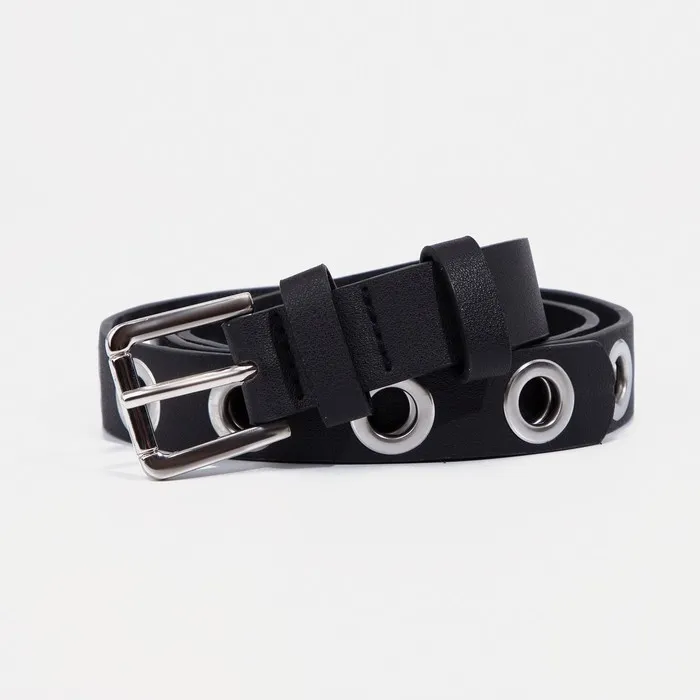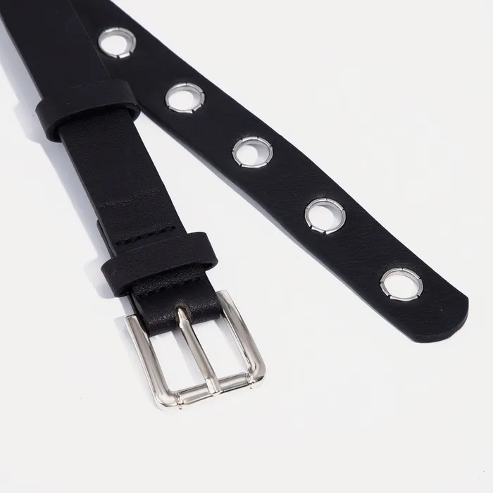Ремень женский, ширина 2,4 см, пряжка металл, люверсы, цвет чёрный — Характеристики