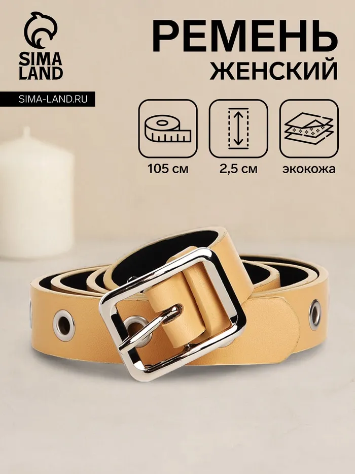 Ремень женский, ширина 2.5 см, люверсы, пряжка металл, цвет бежевый — Характеристики