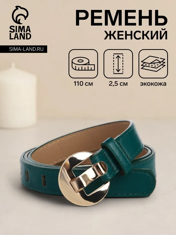 Ремень женский, ширина 2,5 см, цвет зелёный — Характеристики