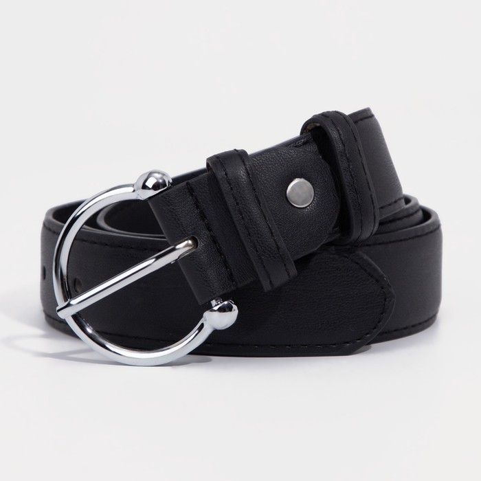 - Классическая пряжка из металла серебристого оттенка надежно фиксирует ремень.