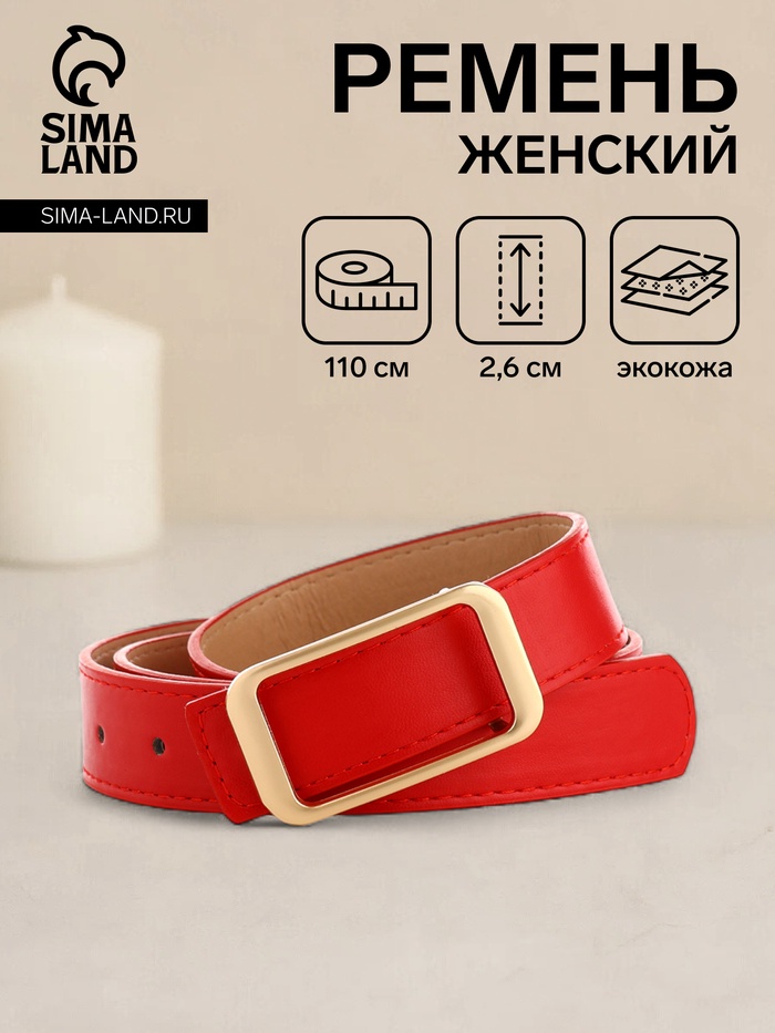 Ремень женский, ширина 2,6 см, пряжка металл, цвет красный — Характеристики
