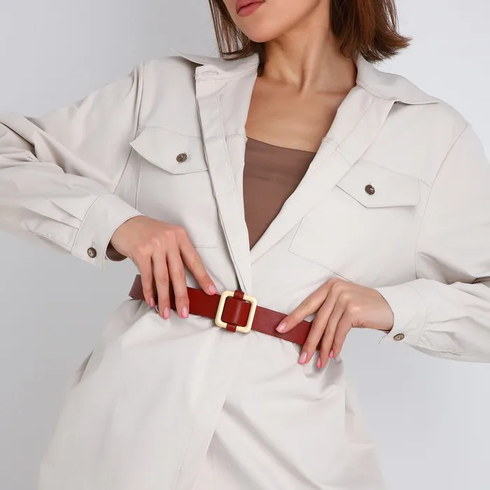 Ремень женский, ширина 3 см, пряжка металл, цвет коричнево-красный — Характеристики