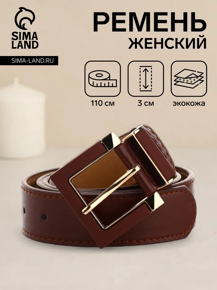 Ремень женский, ширина 3 см, винт, пряжка кожа, цвет коричневый — Характеристики