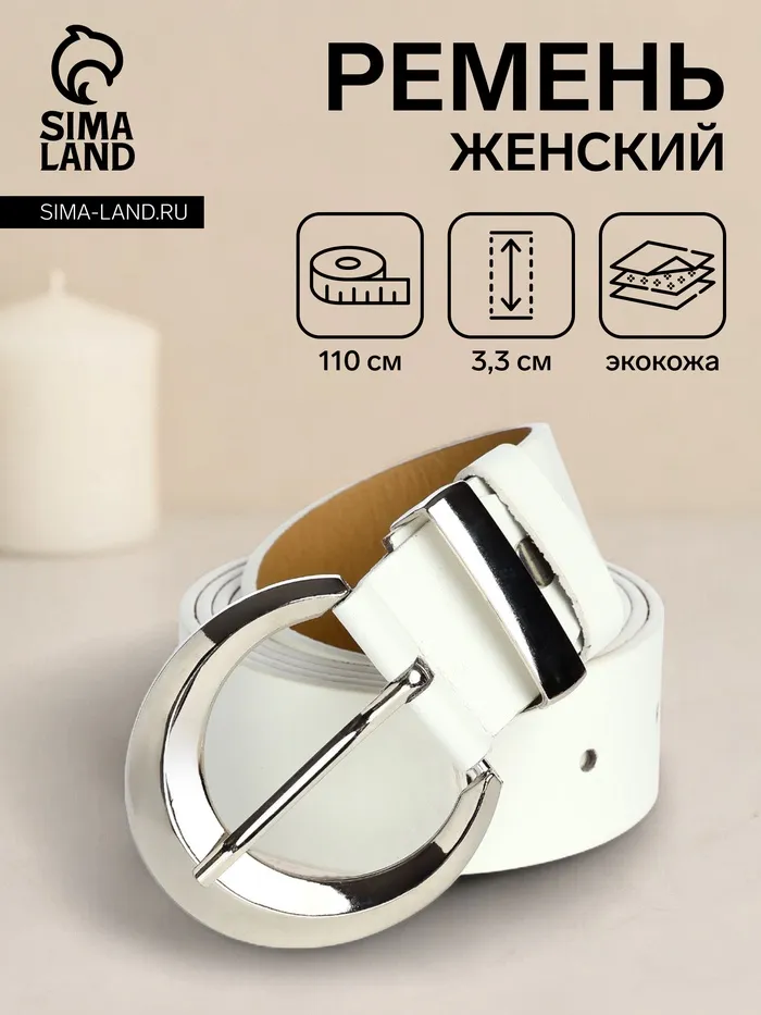 Ремень женский, ширина 3,3 см, винт, пряжка металл, цвет белый — Характеристики