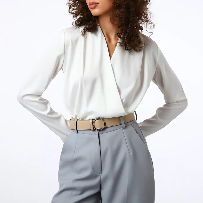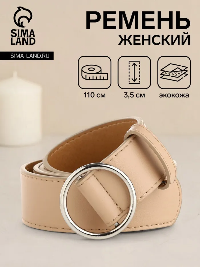 Ремень женский, ширина 3,5 см, пряжка серебро, цвет бежевый — Характеристики
