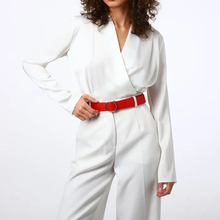 Ремень женский, ширина 3,5 см, пряжка серебро, цвет красный — Характеристики