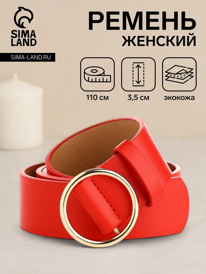 Ремень женский, ширина 3,5 см, цвет красный — Характеристики