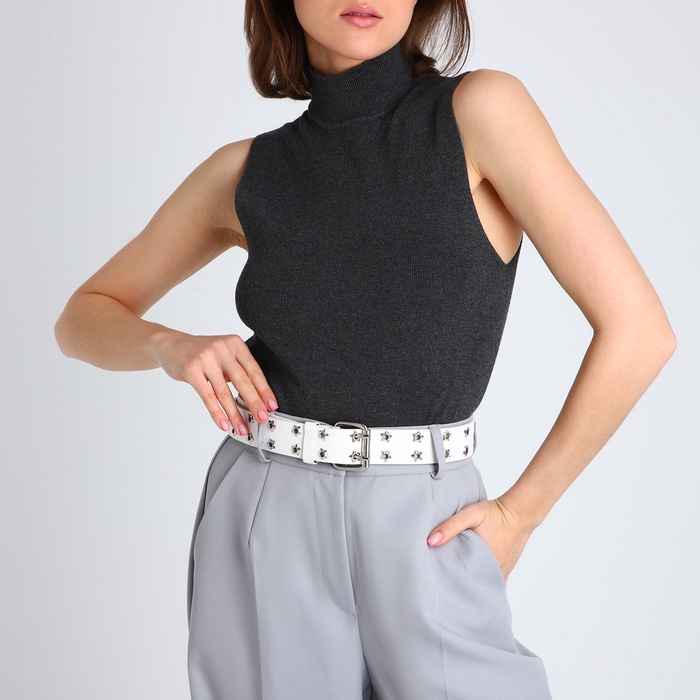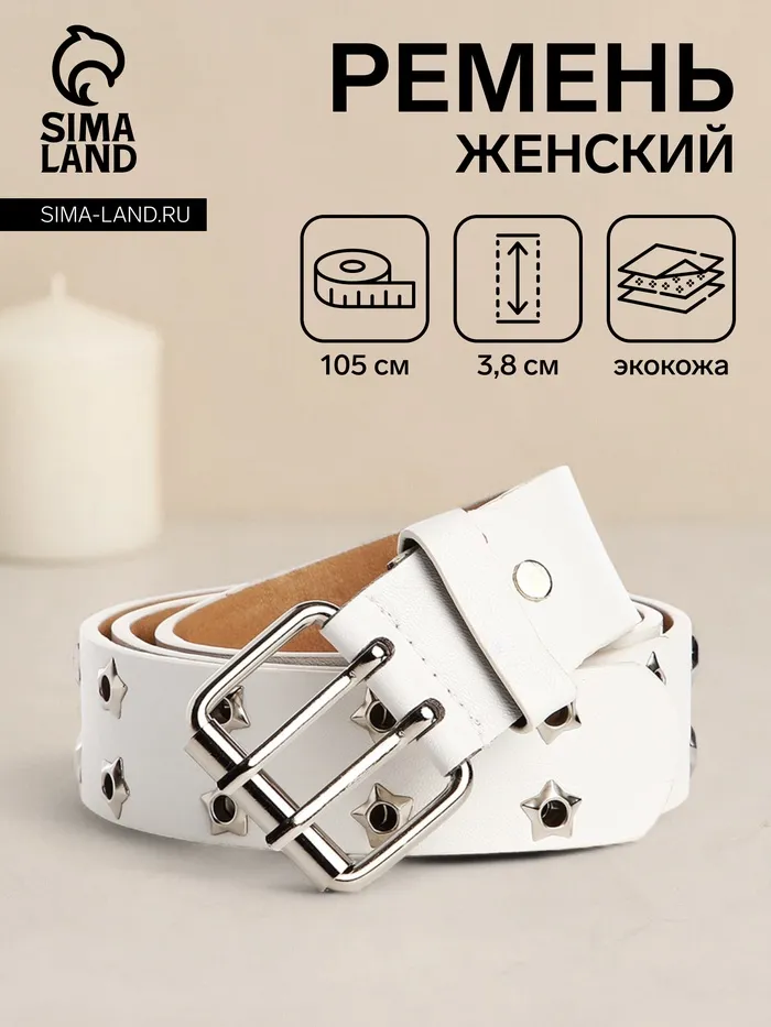 Ремень женский, ширина 3.8 см, люверсы, винт, пряжка металл, цвет белый — Характеристики