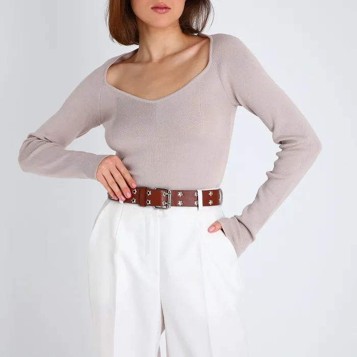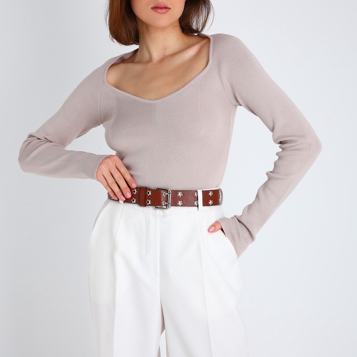Ремень женский, ширина 3.8 см, люверсы, винт, пряжка металл, цвет коричневый — Характеристики