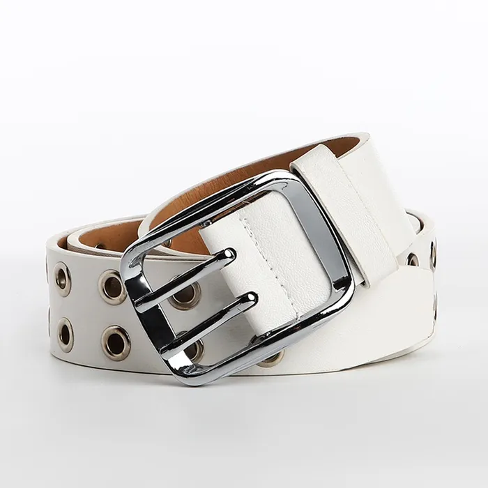 Ремень женский, ширина 4 см, люверсы, винт, пряжка металл, цвет белый