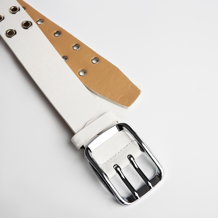 Ремень женский, ширина 4 см, люверсы, винт, пряжка металл, цвет белый — Характеристики