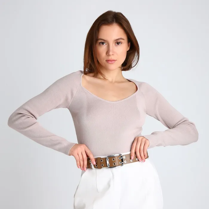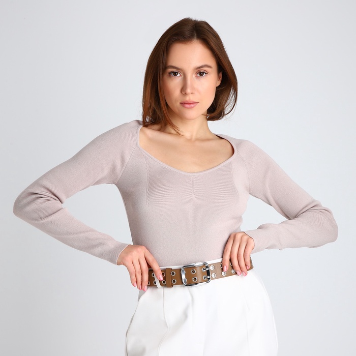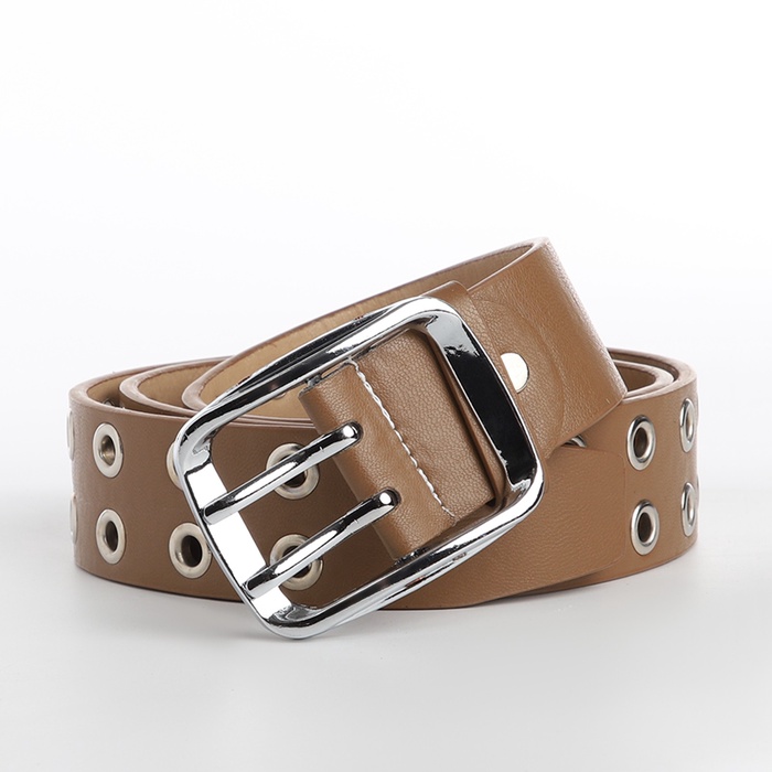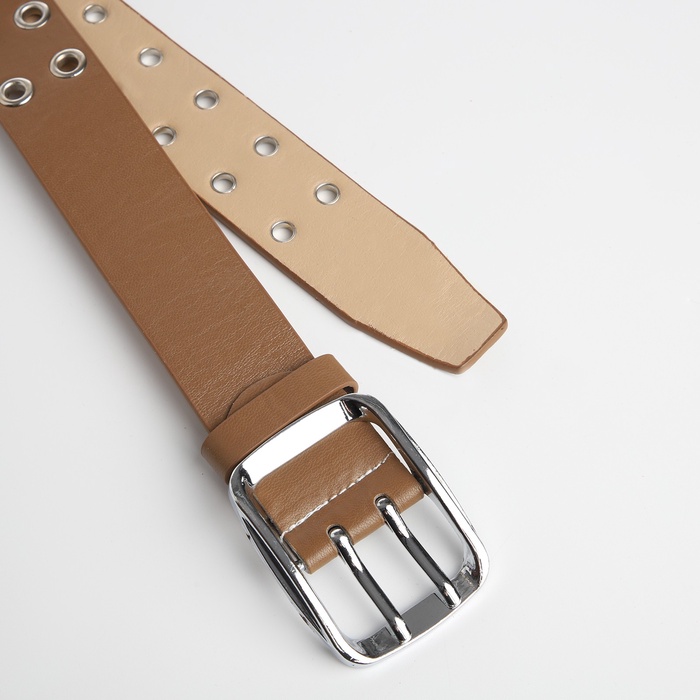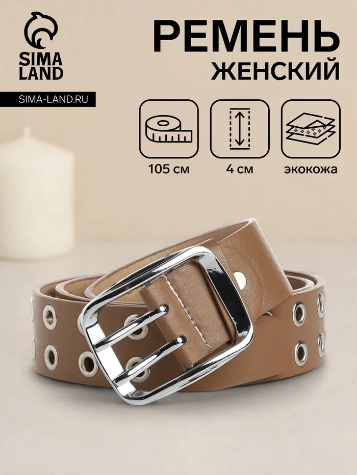 Ремень женский, ширина 4 см, люверсы, винт, пряжка металл, цвет бежевый — Характеристики
