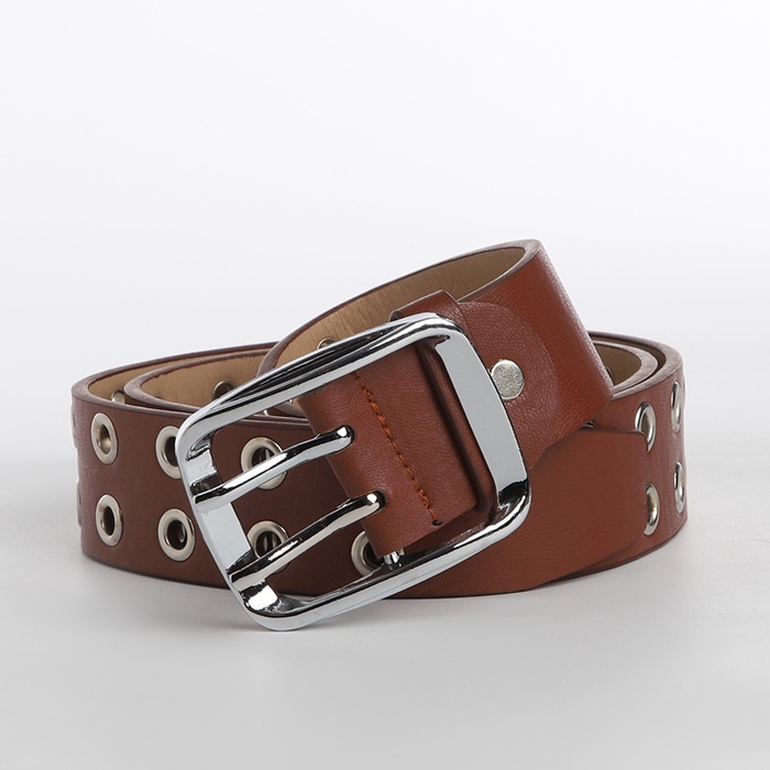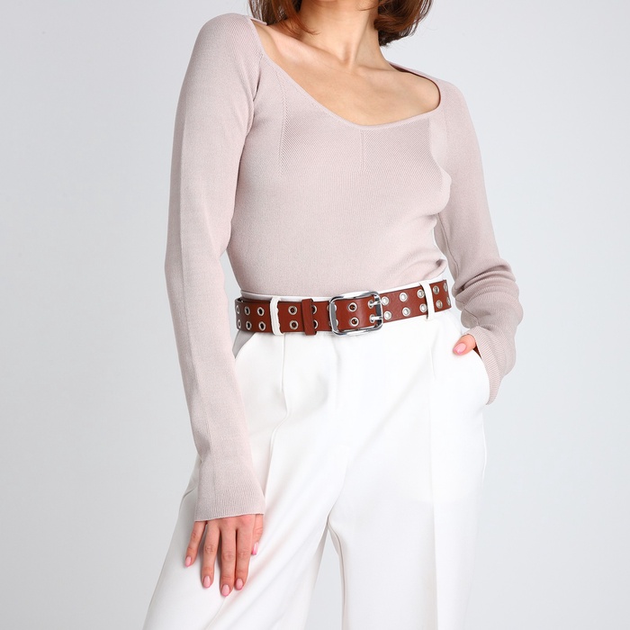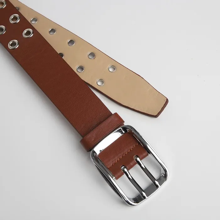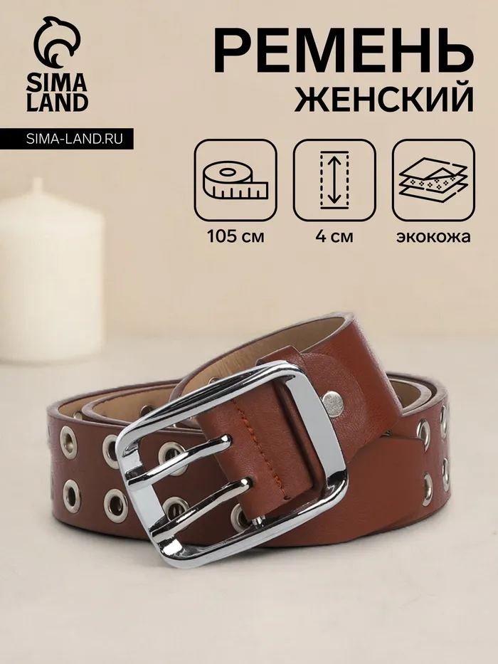 Ремень женский, ширина 4 см, люверсы, винт, пряжка металл, цвет коричневый — Характеристики