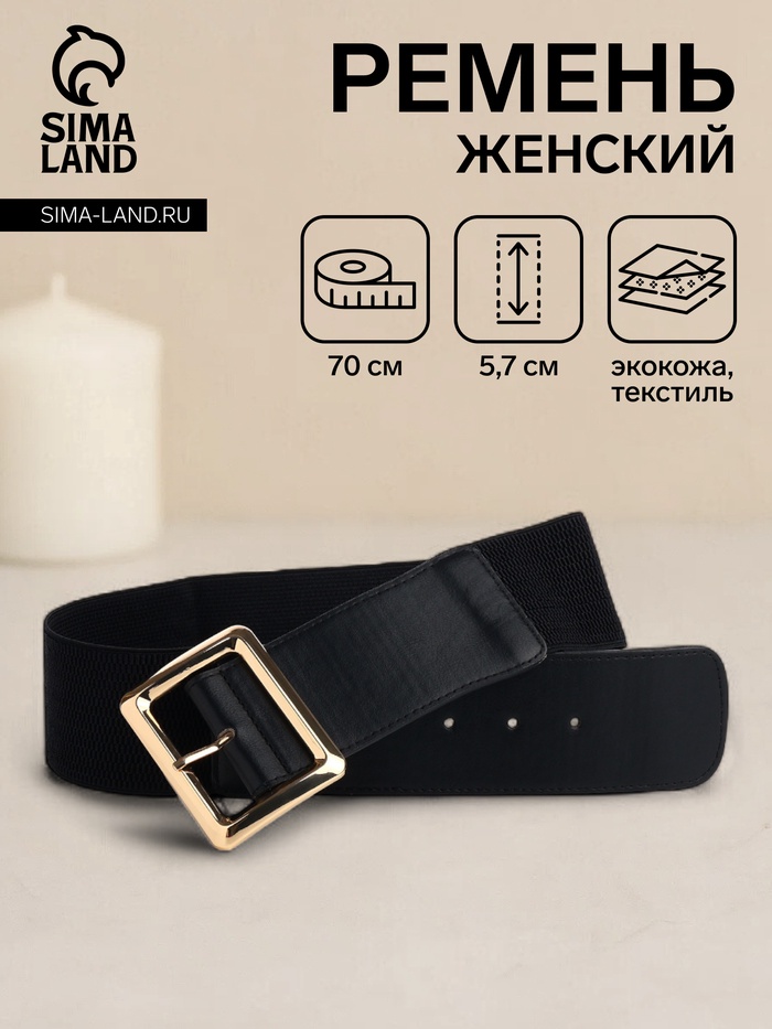 Ремень женский, ширина 5,7 см, пряжка золото, цвет чёрный — Характеристики