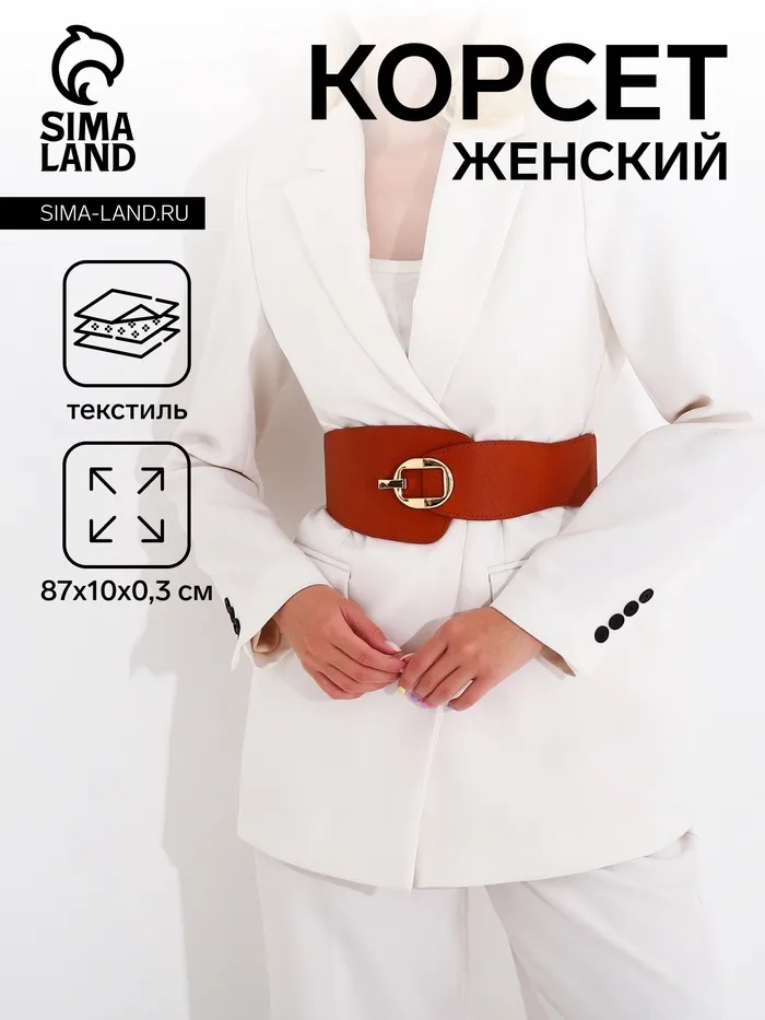 Ремень женский, ширина 6-10 см, на резинке, пряжка металл, цвет рыжий — Характеристики