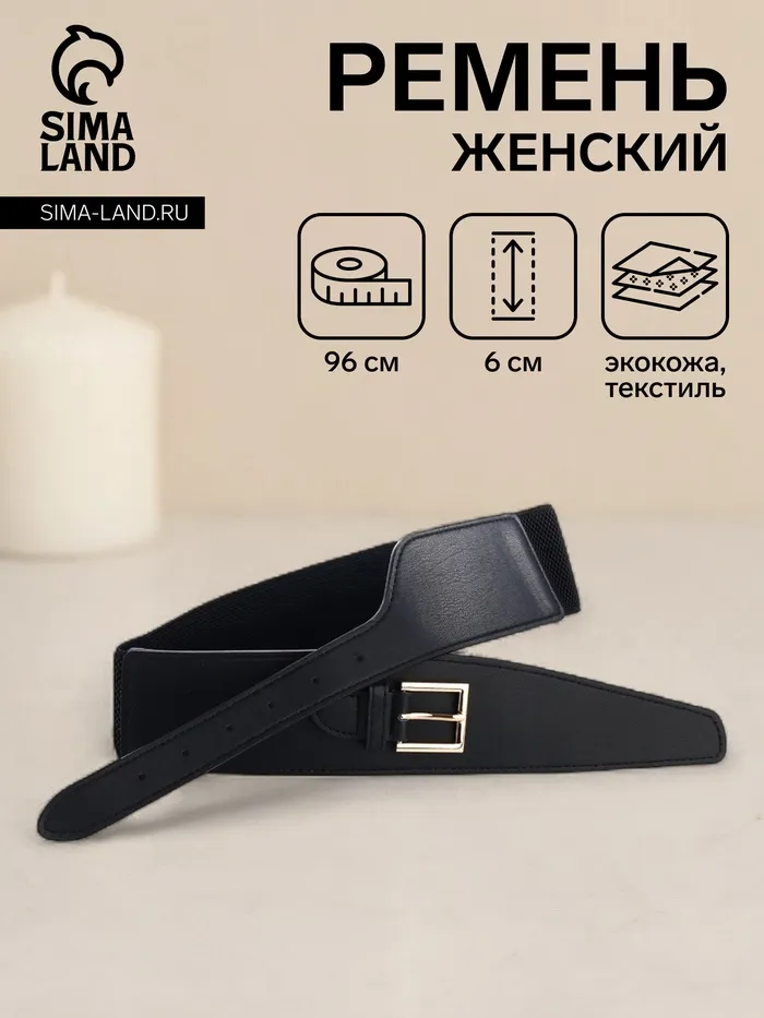 Ремень женский, ширина 6 см, пряжка металл, цвет чёрный — Характеристики