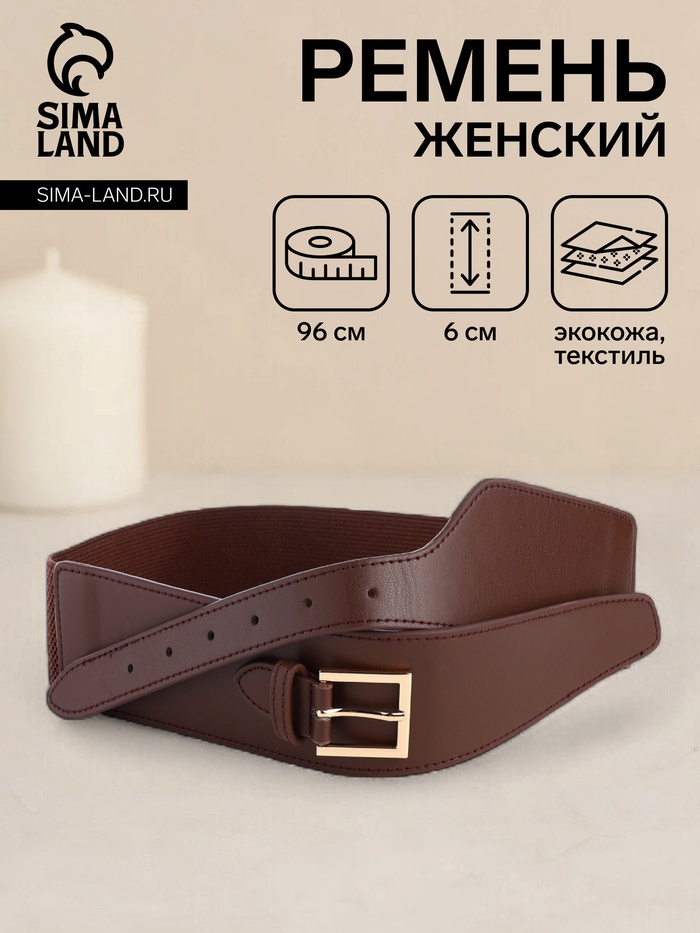 Ремень женский, ширина 6 см, пряжка металл, цвет коричневый — Характеристики