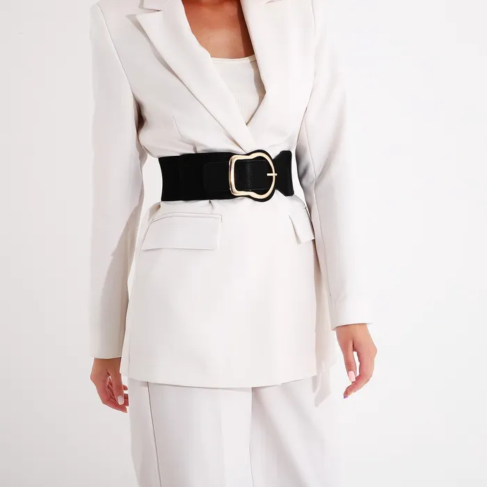 Ремень женский, ширина 8 см, на резинке, пряжка металл, цвет чёрный — Характеристики