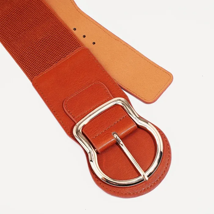 Ремень женский, ширина 8 см, на резинке, пряжка металл, цвет рыжий — Характеристики