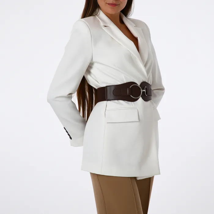 Ремень женский, ширина 8,5 см, пряжка металл, цвет коричневый — Характеристики