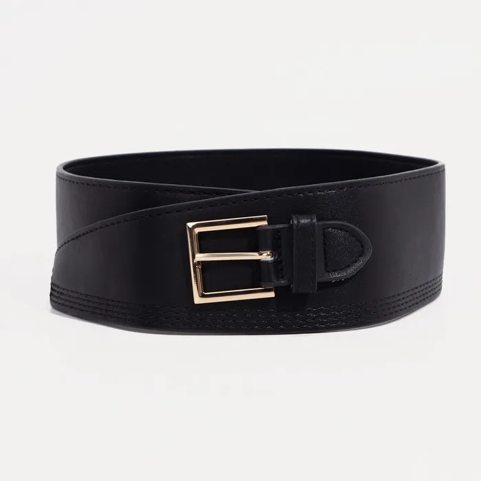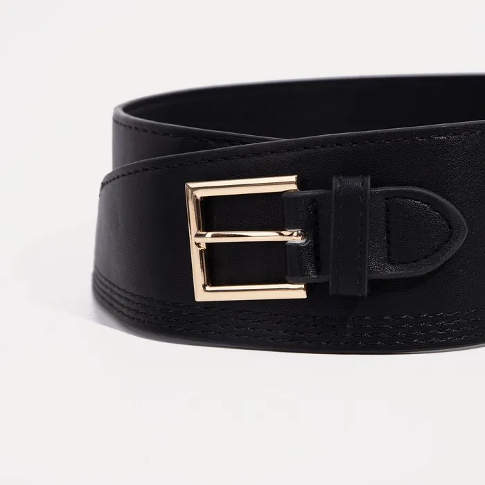 Ремень женский широкий, 105×6.5 см, пряжка металл, золотистая, чёрный — Характеристики