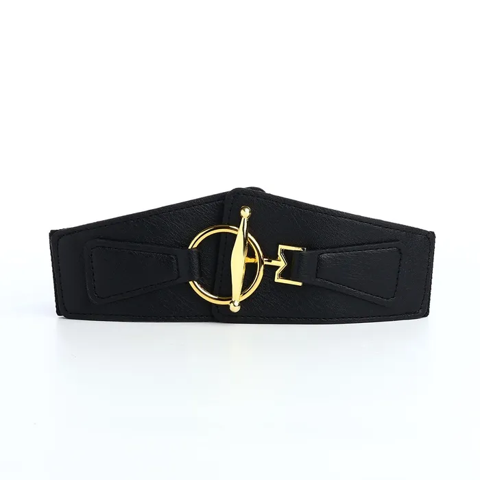 Этот широкий пояс с золотистой пряжкой создан для тех, кто ценит в аксессуарах выразительность и комфорт. Чёрный текстиль мягко облегает талию, сохраняя форму и даря ощущение лёгкости. Золотистый акцент фурнитуры добавляет образу яркий штрих, делая его завершённым и гармоничным.