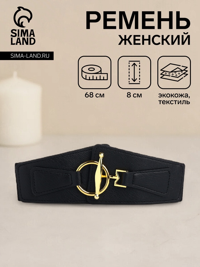 Ремень женский широкий, 68×8 см, пряжка металл, золотистая, чёрный — Характеристики