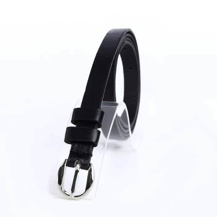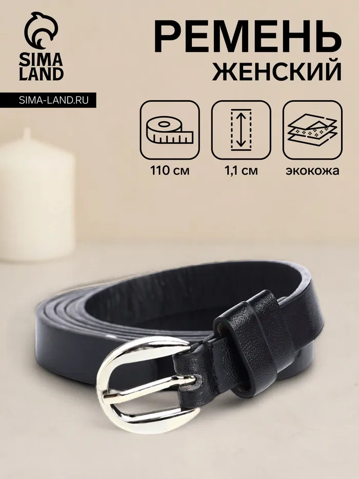 Ремень женский тонкий, 110×1.1 см, классическая пряжка металл, серебристая, чёрный — Характеристики