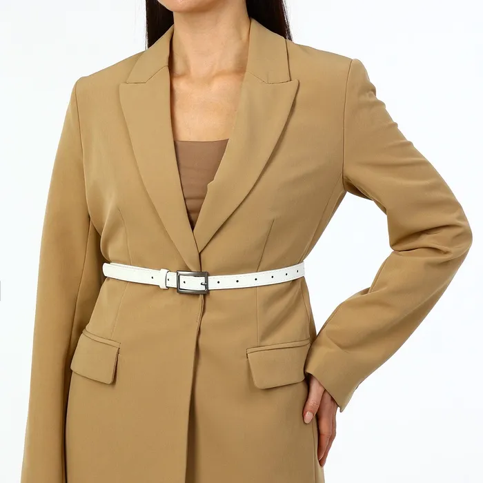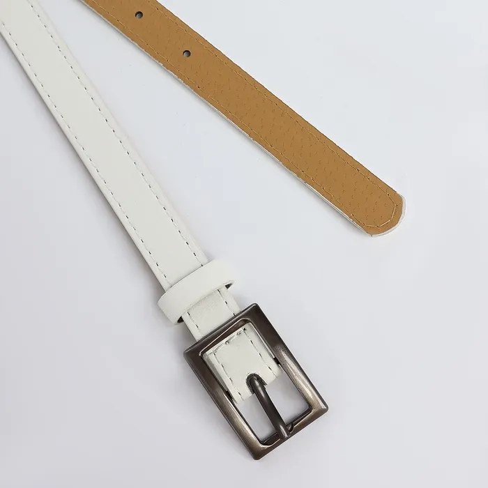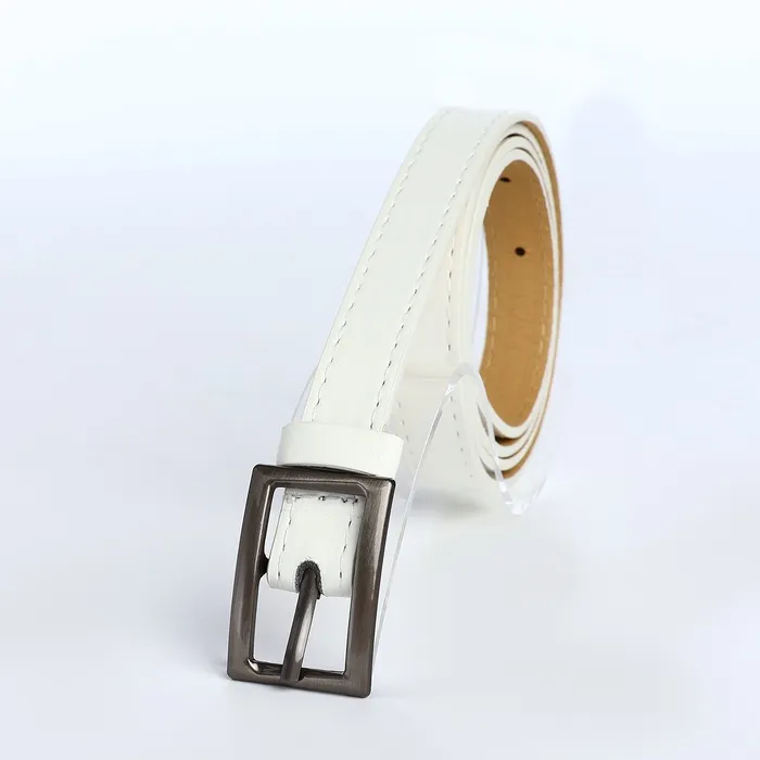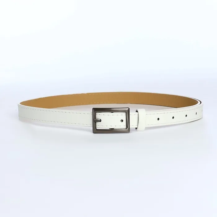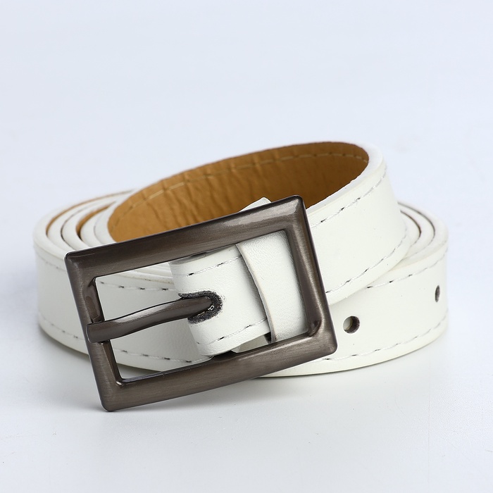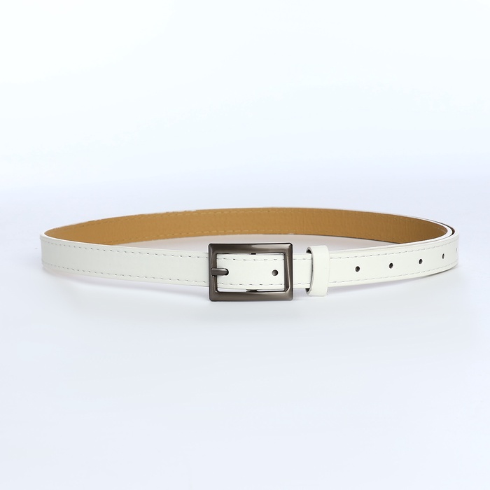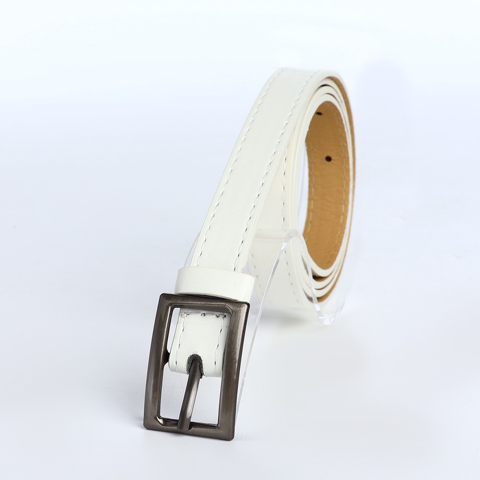 Ремень женский тонкий, 110×1.1 см, классическая пряжка металл, тёмно-серебристая, белый — Характеристики