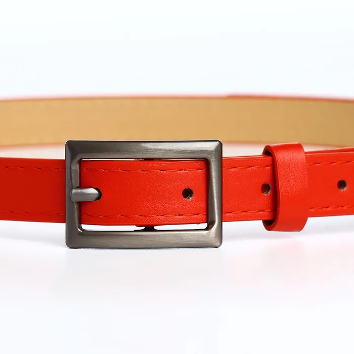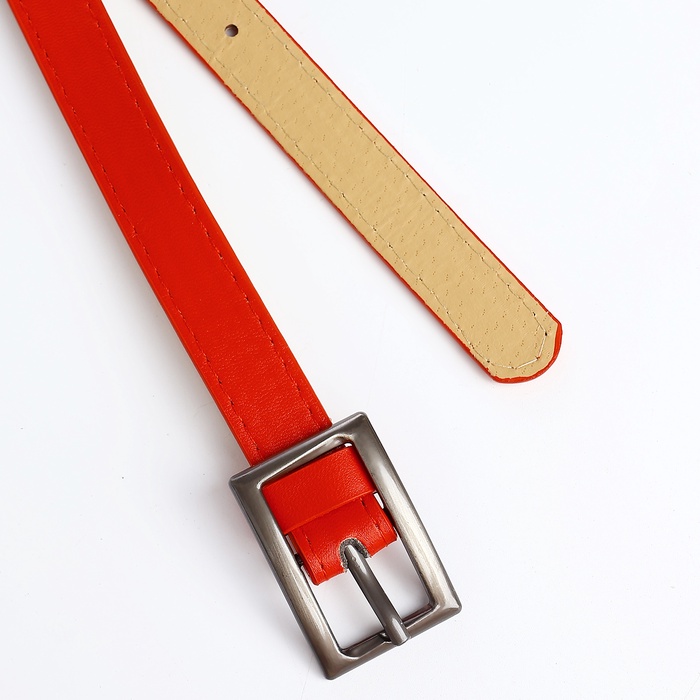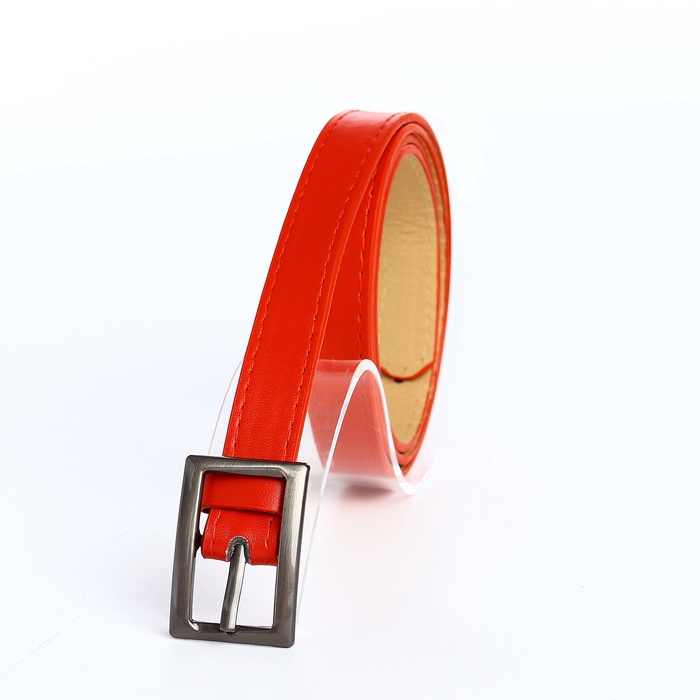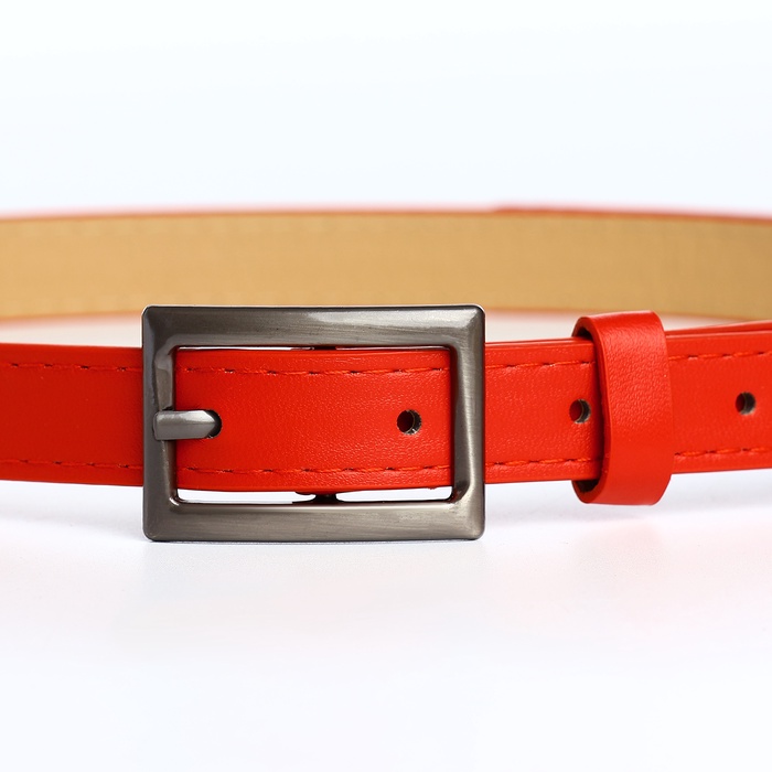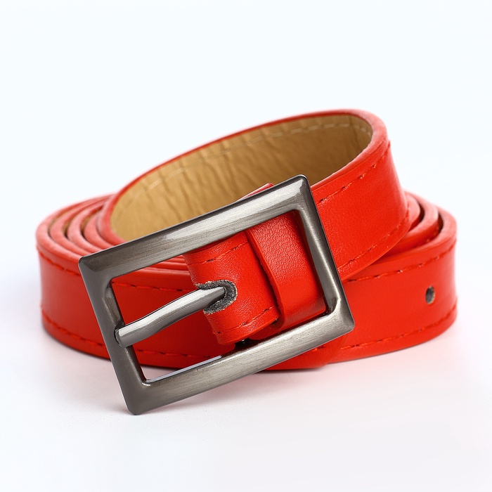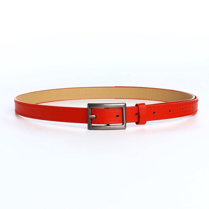 Ремень женский тонкий, 110×1.1 см, классическая пряжка металл, тёмно-серебристая, красный — Характеристики