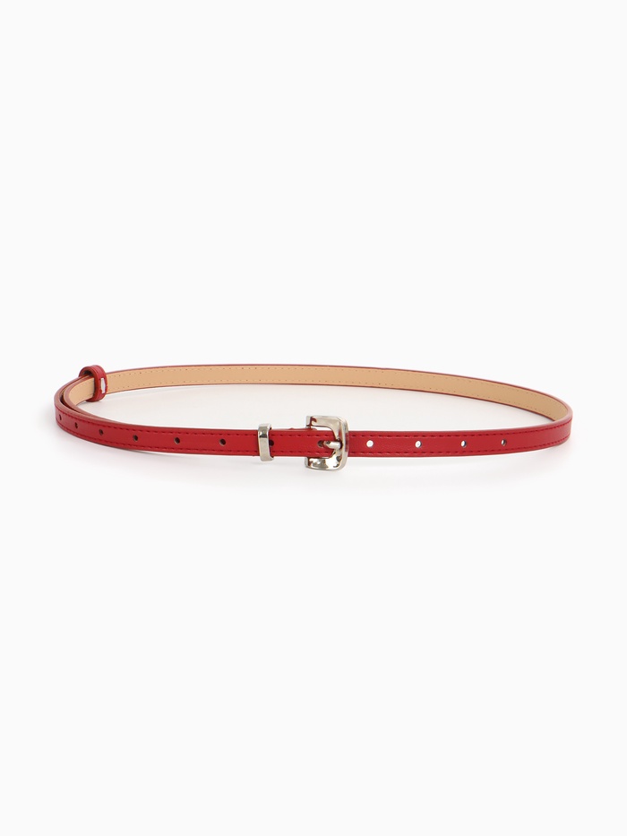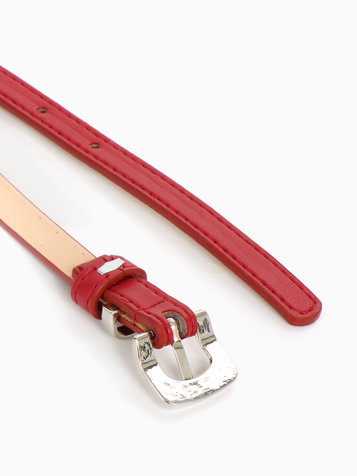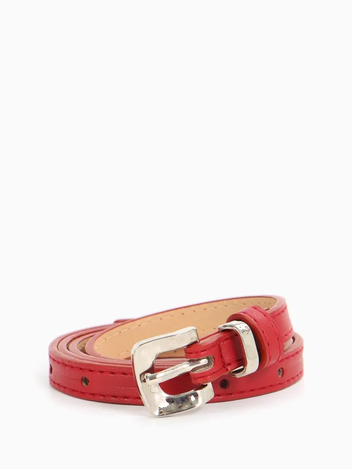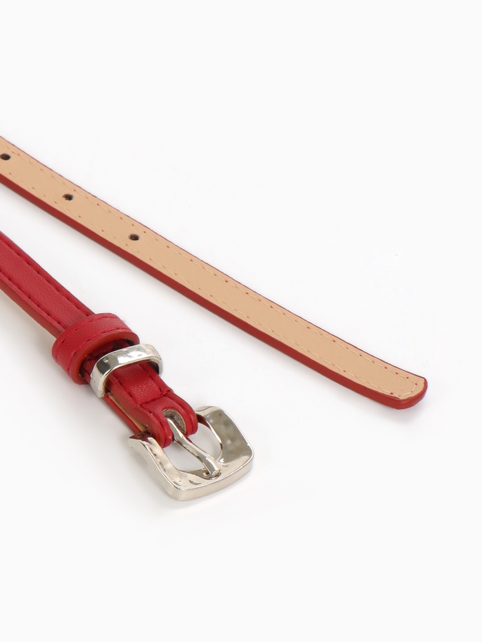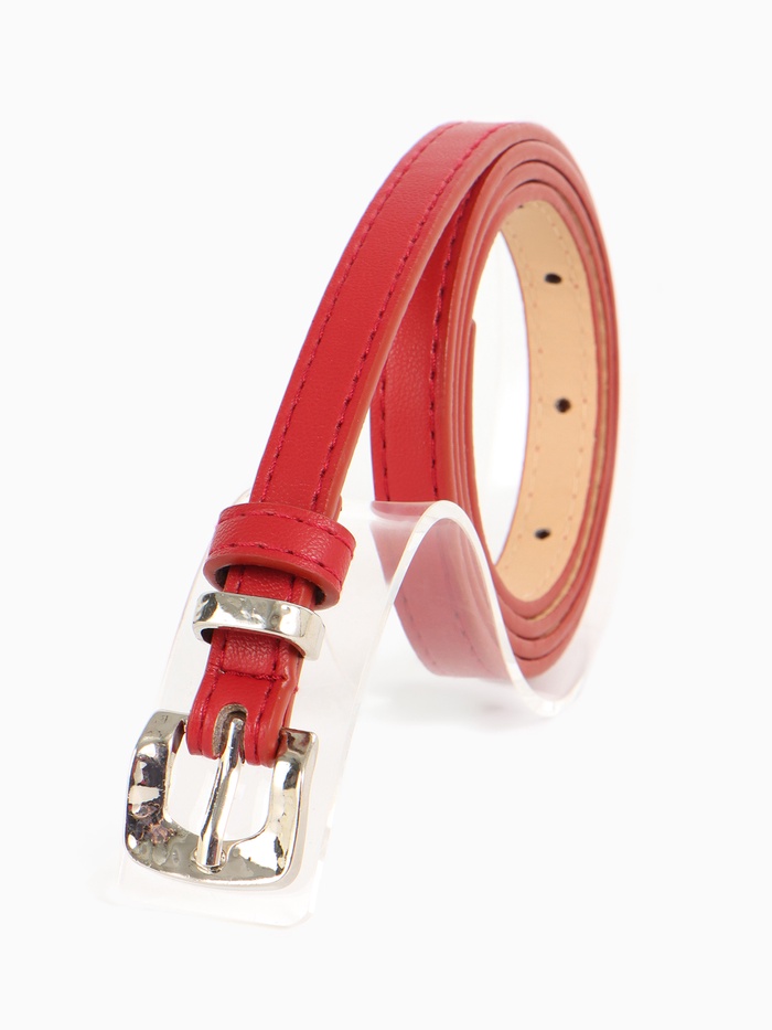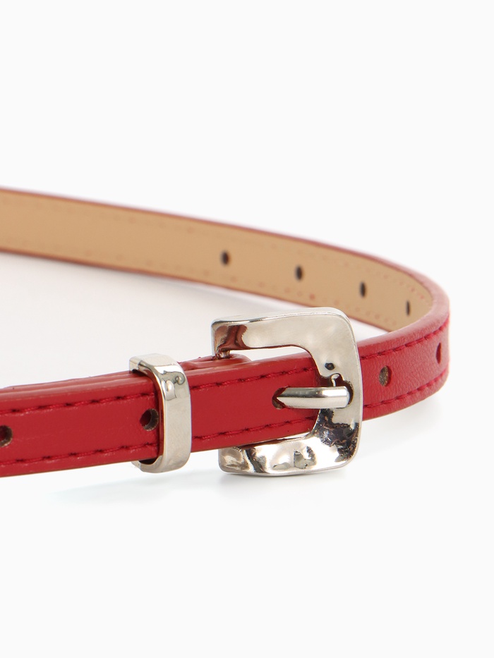 Узкий красный ремень с серебряной пряжкой — стильный акцент для смелых образов. Ширина создаёт выразительную линию талии, сохраняя при этом женственность силуэта. Искусственная кожа с глянцевым покрытием подчёркивает насыщенность цвета.