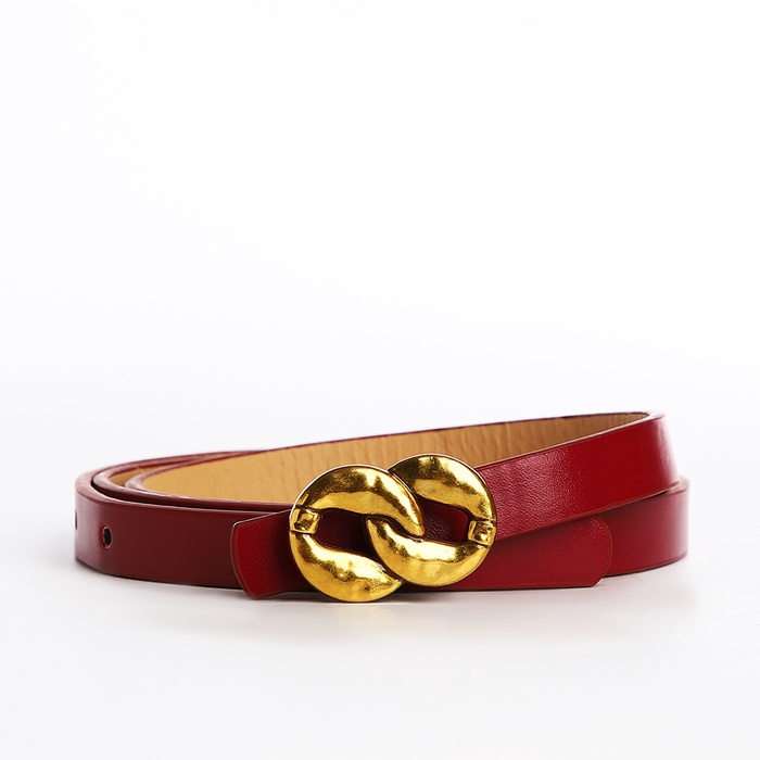Ремень женский тонкий, 110×1.4 см, пряжка-гвоздик металл, золотистая, бордовый — Характеристики